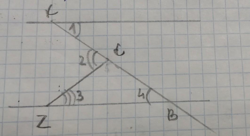 продовжимо січну КС до перетину з прямою б.кут4=куту1 як різносторонні.