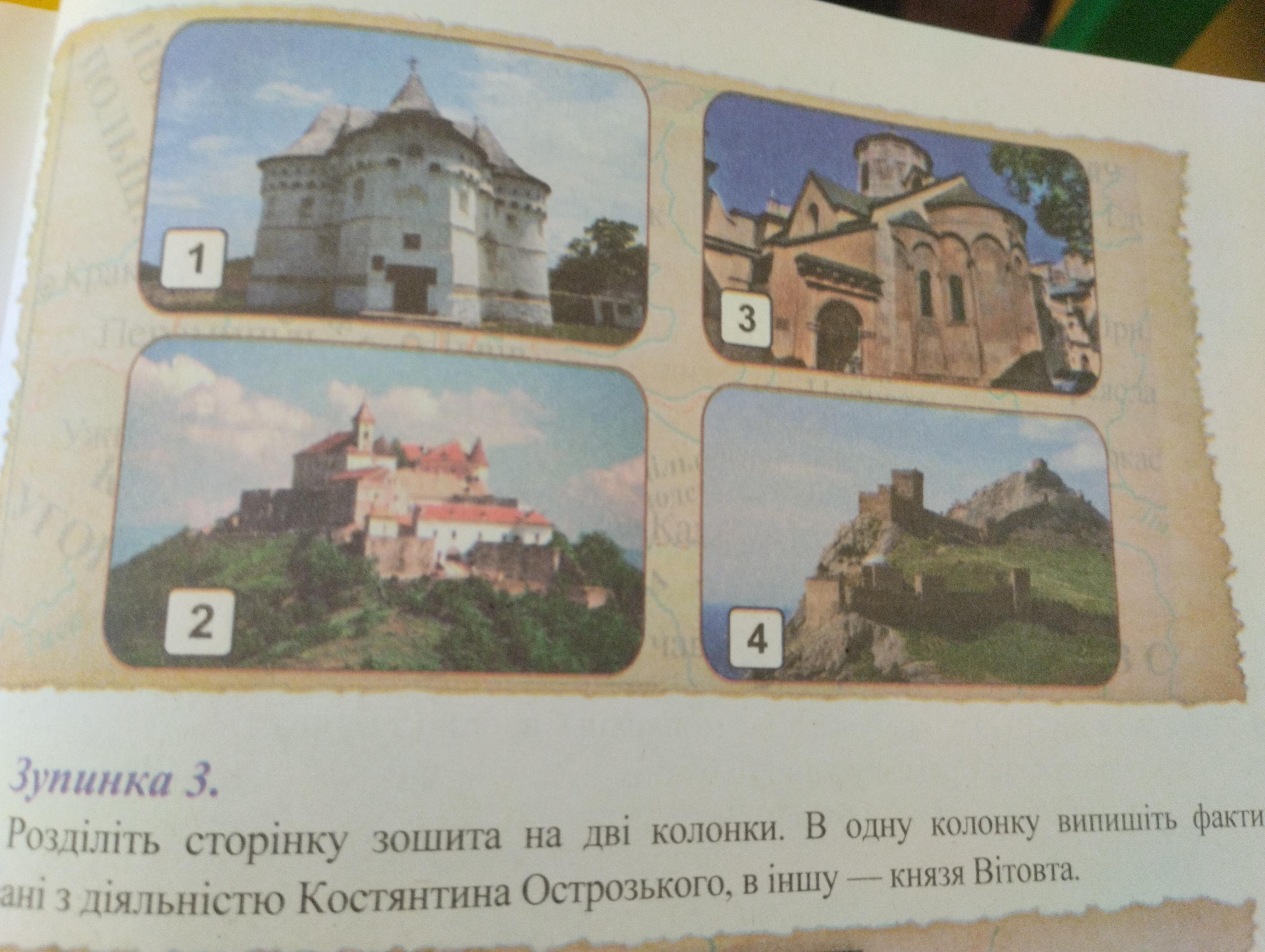 Розгляньте зображення пам'яток архітектури. Допоможіть Марічці та Ігорю з'ясувати, де вони були побудовані.