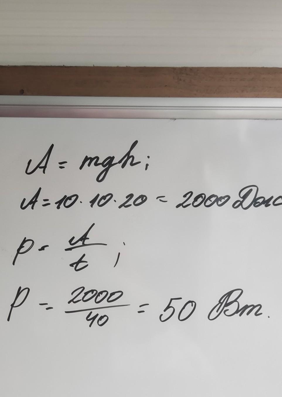 Машина рівномірно піднімає тіло масою 10 кг на висоту 20 м за 40 секунд. Чому дорівнює її потужність?