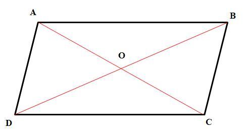 Решение. Так как диагонали параллелограмма пересекаются в точке О и этой точкой пересечения делятся пополам, то точка О является серединой отрезков AC и BD.