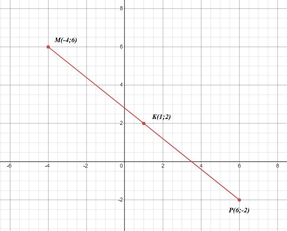 Помогите пожалуйста!!! Позначити на координатній площині точки М(-4;6), Р(6;-2) та К - середину МР. Які її координати?