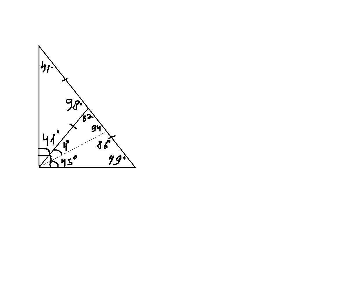 и так угол между биссектрисой и медианой равен = 4 градусам