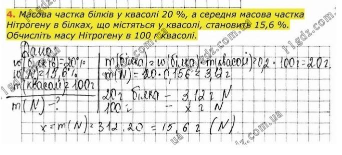 Масова частка білків у квасолі 20%, а середня масова частка Нітрогену в білках, що містяться у квасолі, становить 15,6%. Обчисліть масу Нітрогену в 100г квасолі.