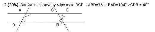 <BDC=<DCE, тобто 40°, поясніть чому будь ласка