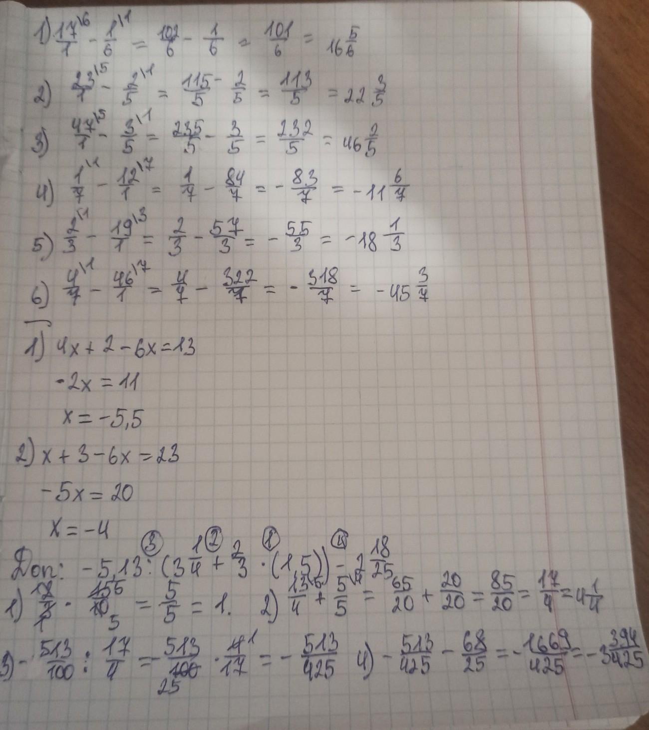 -5,13÷(3 1/4+2/3×(1,5))-2 18/25= 3 394/425