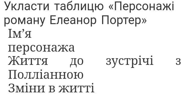 Ответ: Таблиця персонажі роману Елеонор Портер