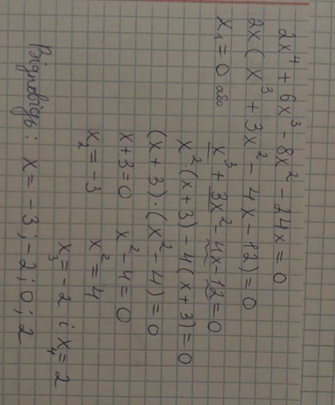 Розвяжи рівняння 2x ^ 4 + 6x ^ 3 - 8x ^ 2 - 24x = 0