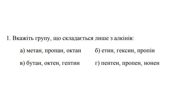 Група, що складається лише з алкінів : етин, гексин, пропін
