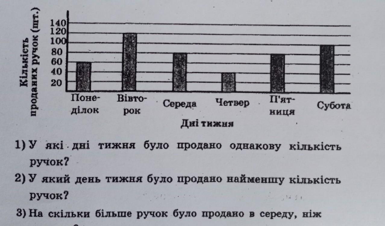 3) у середу 80 у четвер 40; 80-40=40 на 40 ручок