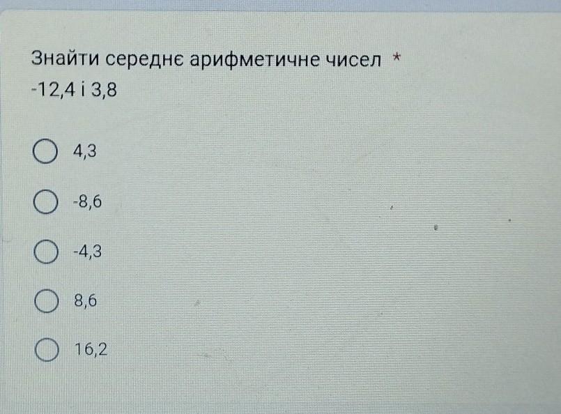 (-12,4) + 3,8 = (-8,6) : 2 = -4,3