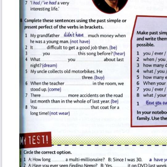 1. My grandfather didn't have much money when he was a young man. (not have)