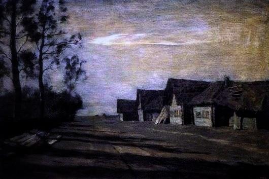 черного, белого и серебряного; игру света и теней – ночь неподвижно-светлая, деревья черные с одной и серебристо-освещенные с другой стороны, растительность с серебристыми кое-где листьями и стеблями, крыша – блестящая росой, дерево с ярко-белым стволом, полная луна на светлом, почти беззвездном небе. Ночь, луна, свет и тени – все поражает незабываемой красотой.