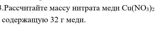 Рассчитайте массу нитрата меди Cu (NO3)2 содержащую 32г меди