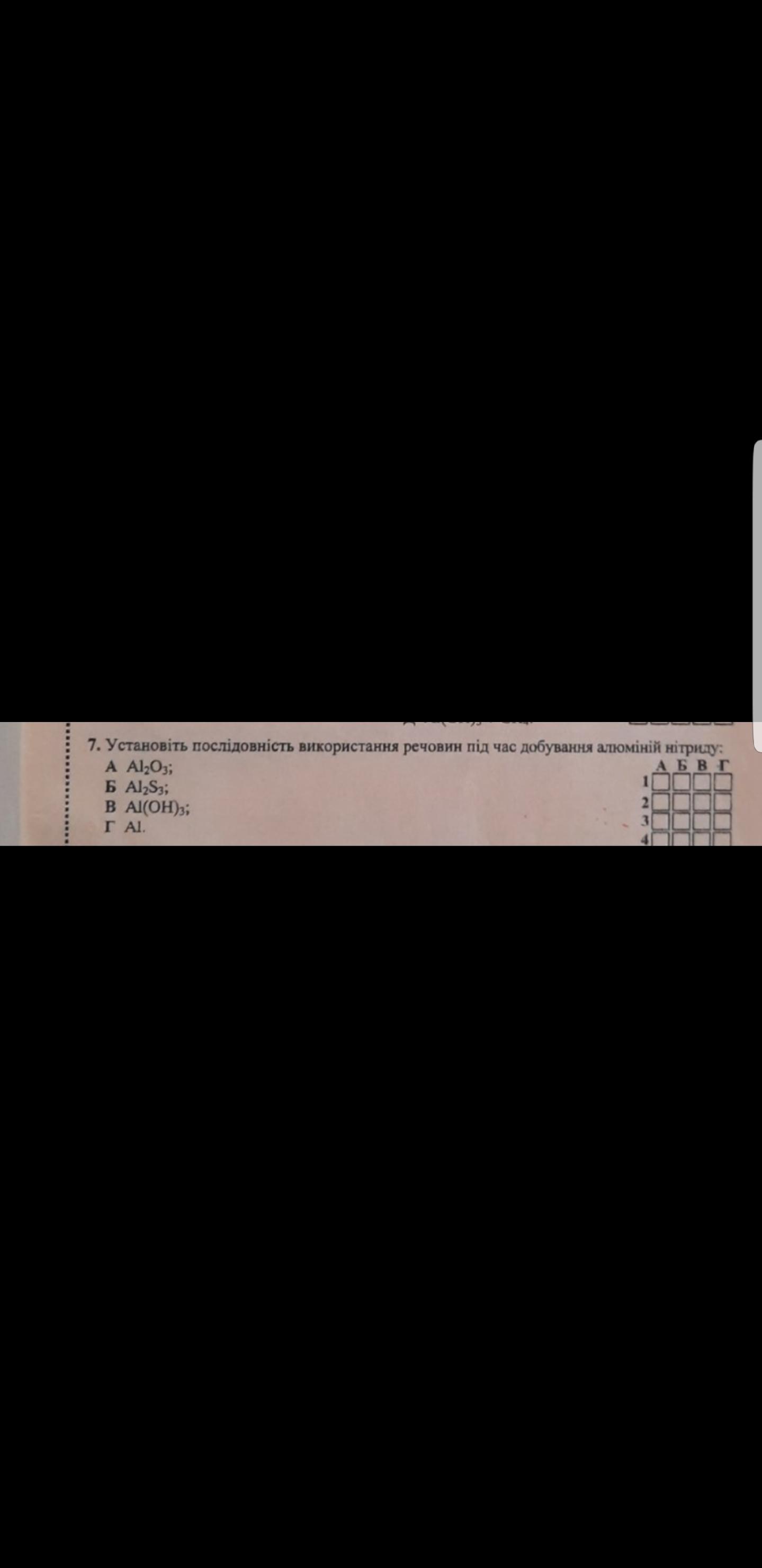 Установіть послідовність використання речовин під час добування алюміній нітриду