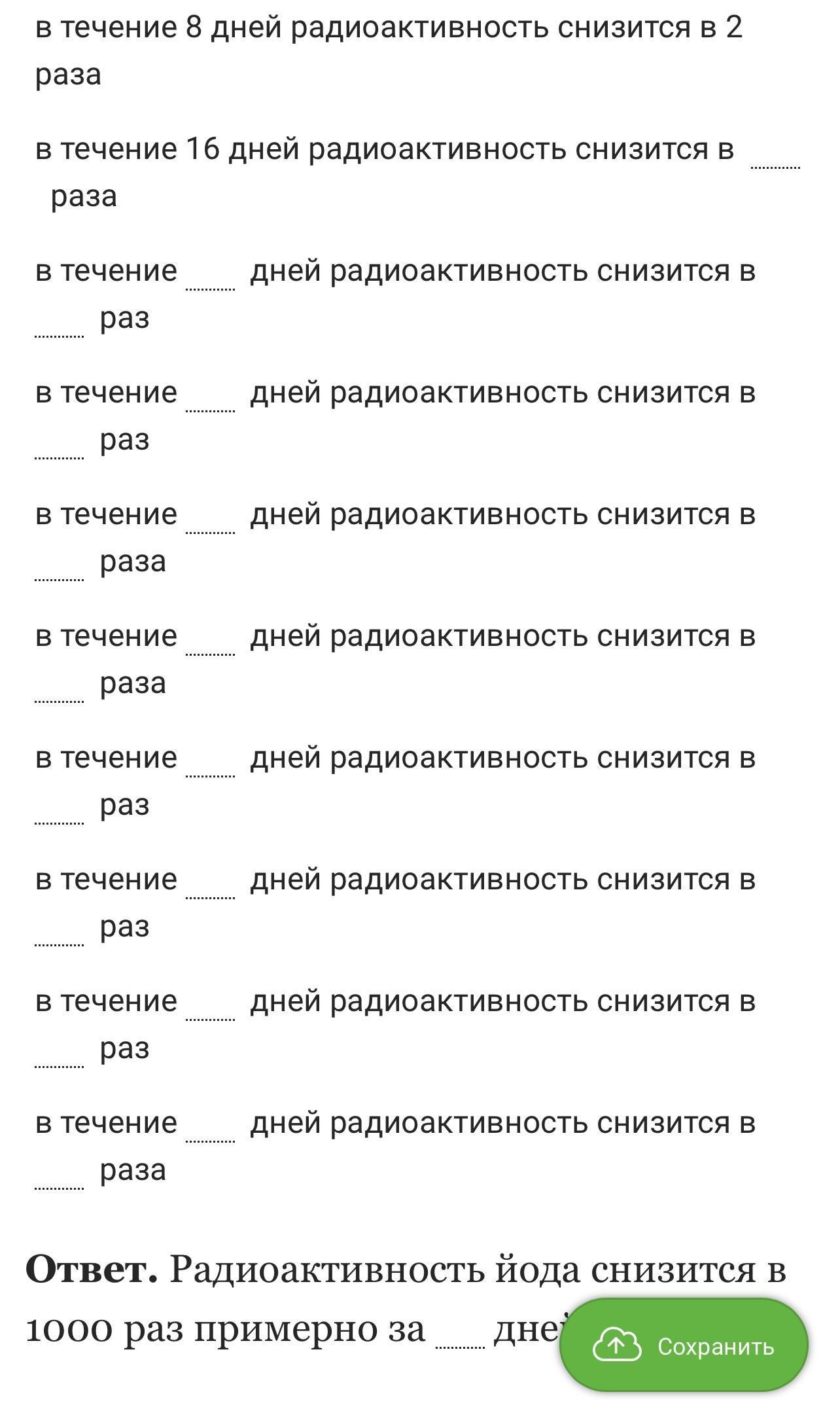 За сколько дней радиоактивность йода снизится в 1000 раз. Для этого следует рассуждать так: