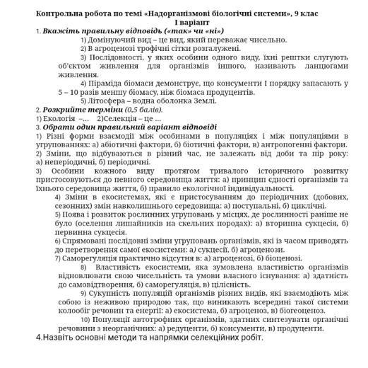 9) сукупність популяцій організмів різних видів, що взаємодіють між собою з неживою природою так, що виникають всередині такої системи кругообіг речовин і енергії: а) екосистема.