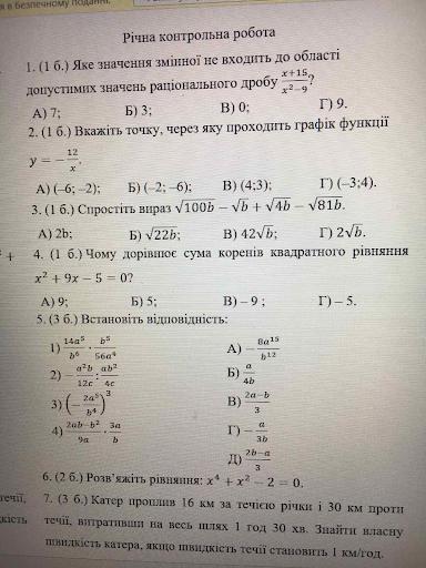 1 . Б. 3 . 2 . Г. (- 3 ; 4 ) . 3 . Г. 2√b . 4 . В. - 9 .
