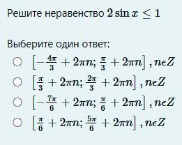 Получается 5pi/6 - 2pi = -7pi/6 и до pi/6, добавляем 2 pi n конечно же.