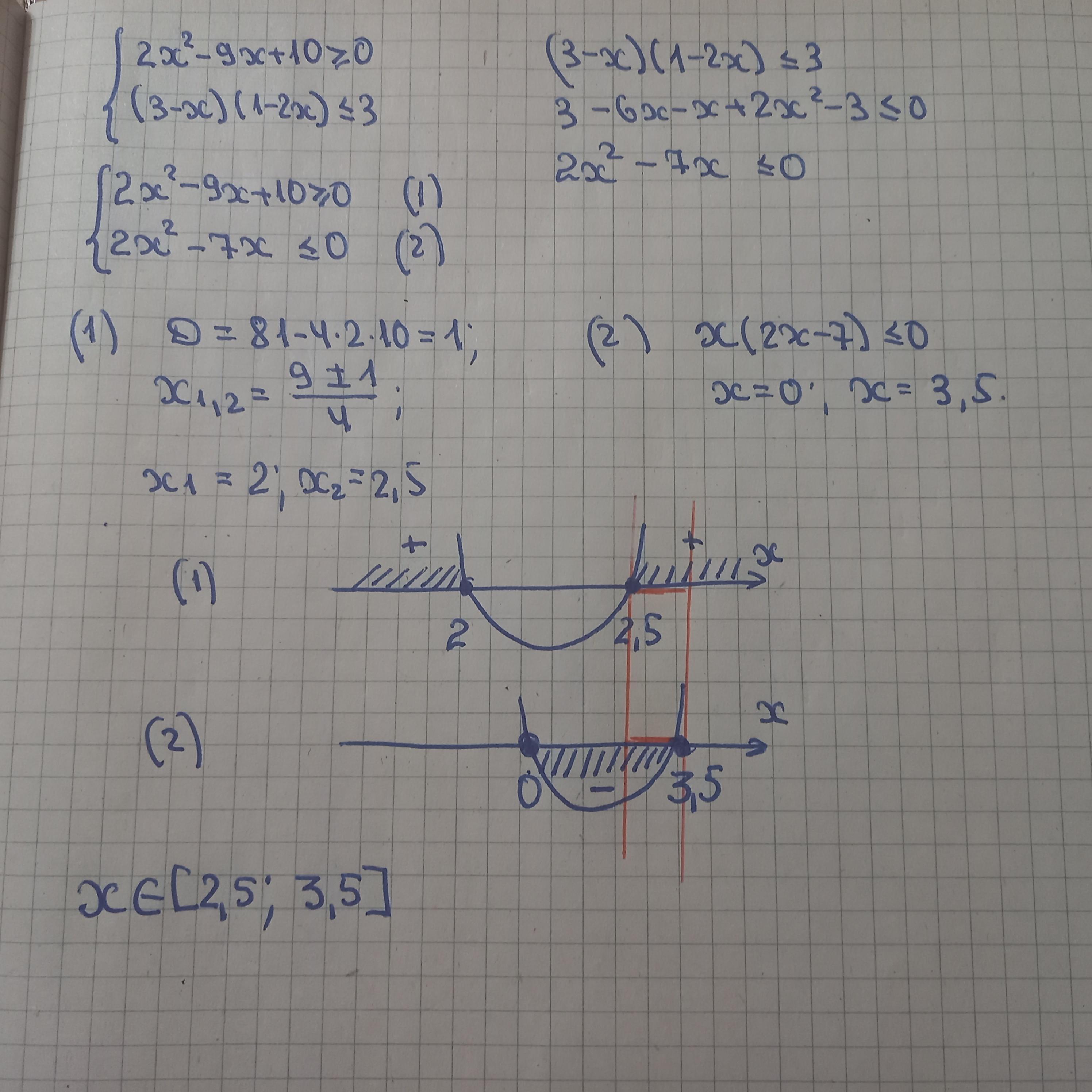 Відповідь: [2,5; 3 5]