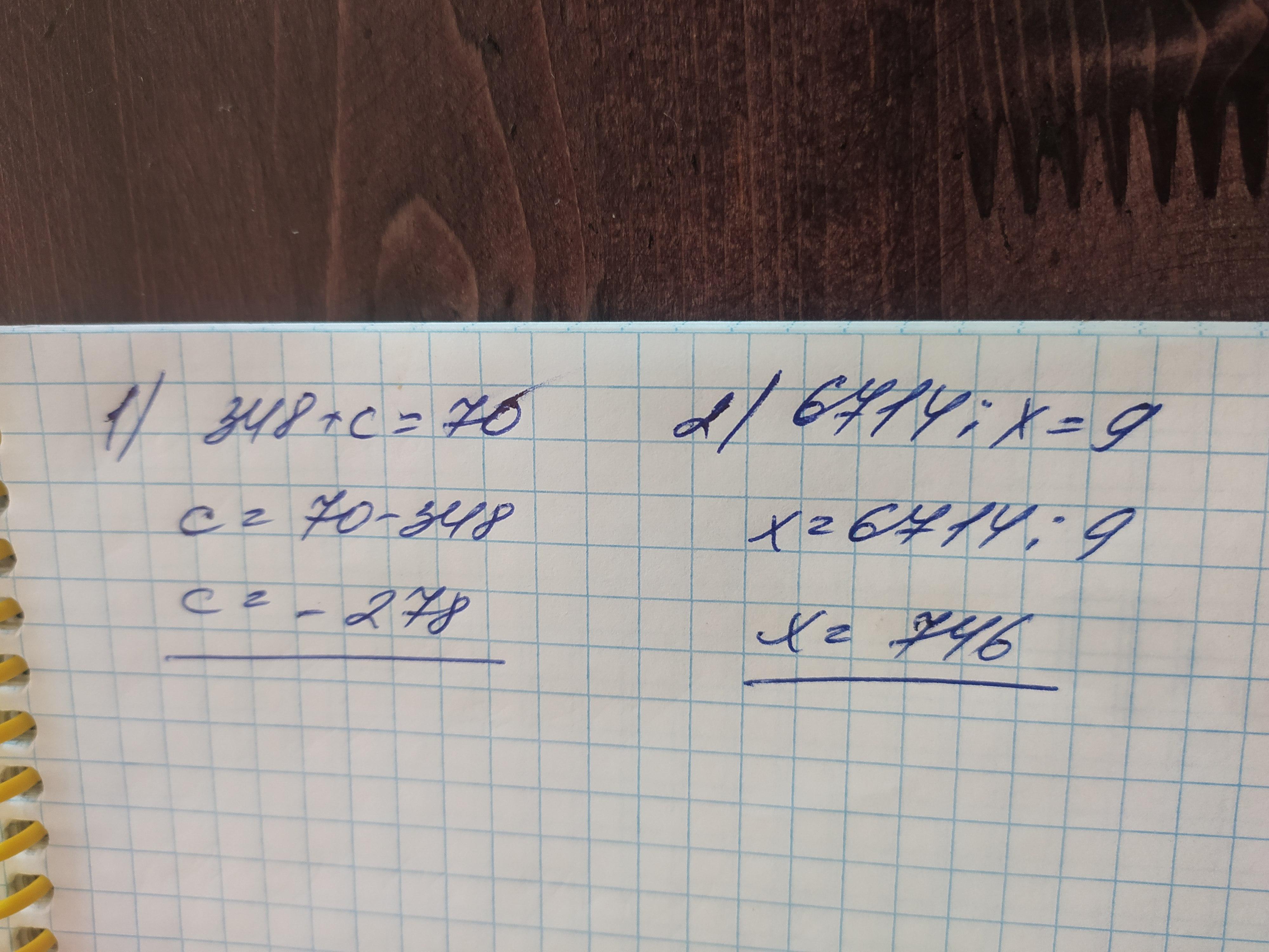 Серед поданих рівнянь вибери і розв'яжи два: перше - на знаходження невідомого доданка, друге - на знаходження невідомого дільника. 6714 : x = 9 b - 457 = 343 a : 24 = 38 348 + c = 70