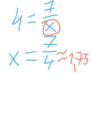 Щоб знайти значення аргументу (x), при якому значення функції (y) дорівнює 4, можемо підставити це значення у формулу y = 7/x і вирішити рівняння: