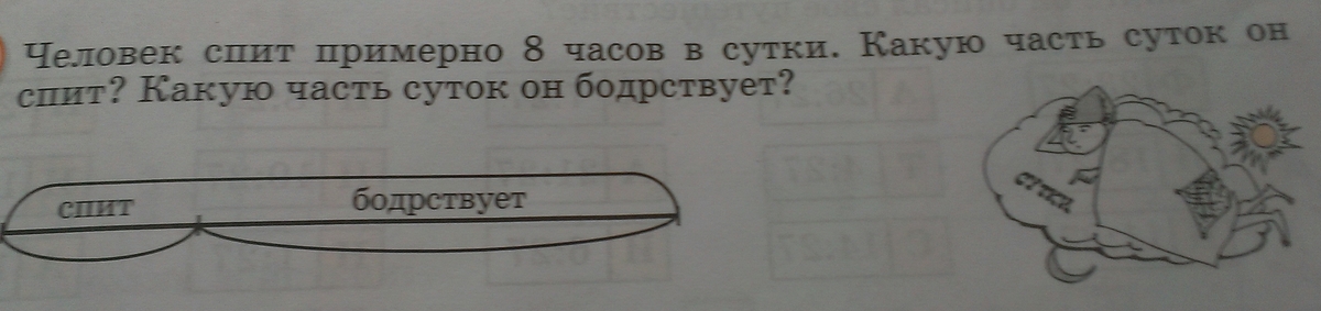 человек спит примерно 8 часов в сутки. какую часть суток он спит? какую часть суток он бодрствует? РЕШЕНИЕ ОЧЕНЬ НУЖНО!!!