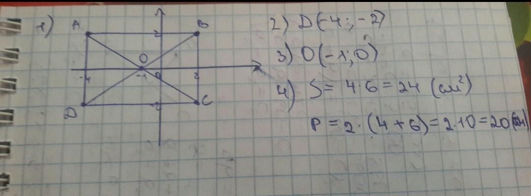 1) Накресліть цей прямокутник. 2) Знайдіть координати точки D. 3) Обчисліть площу і периметр прямокутника, вважаючи, що довжина одиничного відрізка