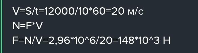 Поїзд,рухаючись рівномірно,проходить шлях 12 км за 10хв. Потужність, що розвиваєтся локомотивом,становить 2344 кВт. Визначити, з якою силою локомотив тягнув поїзд.