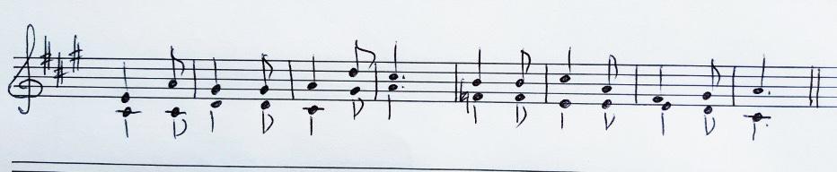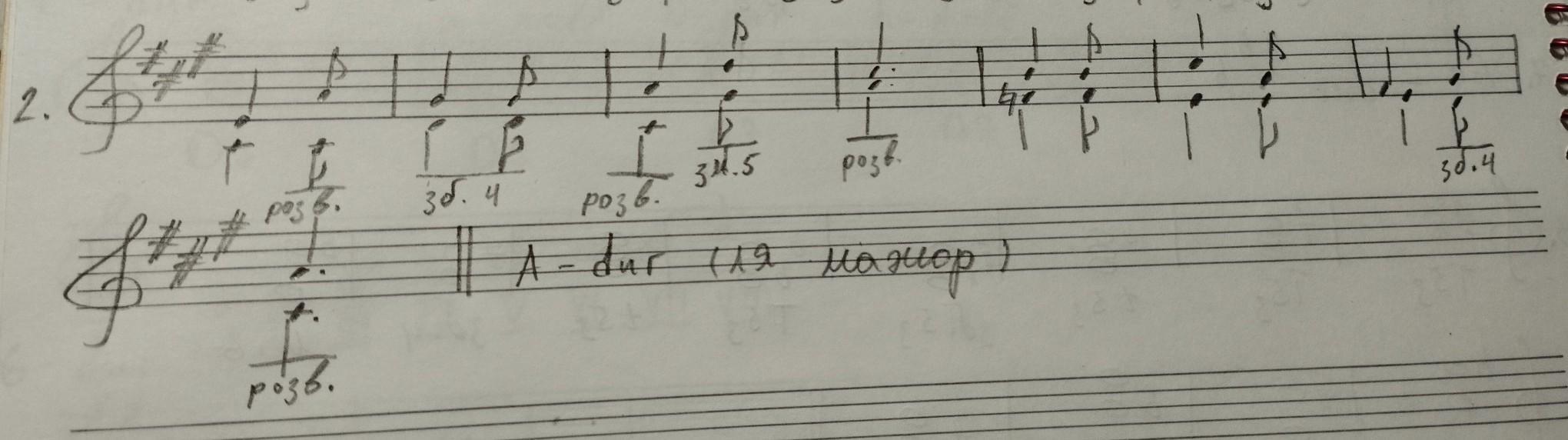 2. Визначте тональність, розмір та інтервали двоголосся. Підкресліть тритони та їх розв’язання