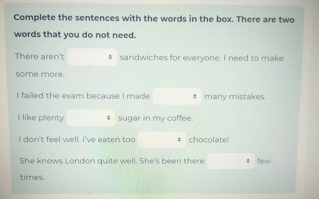 Complete the sentences with the words in the box. There are two words that you do not need.
