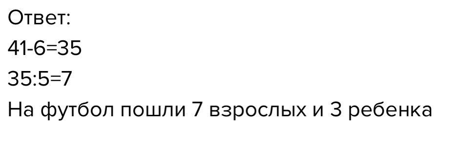 Цена билета на футбол для взрослых сост 5 ман а для детей 2 ман. За 10 бил заплатили 41 ман. Сколько бил для взросл и детей было куплено?