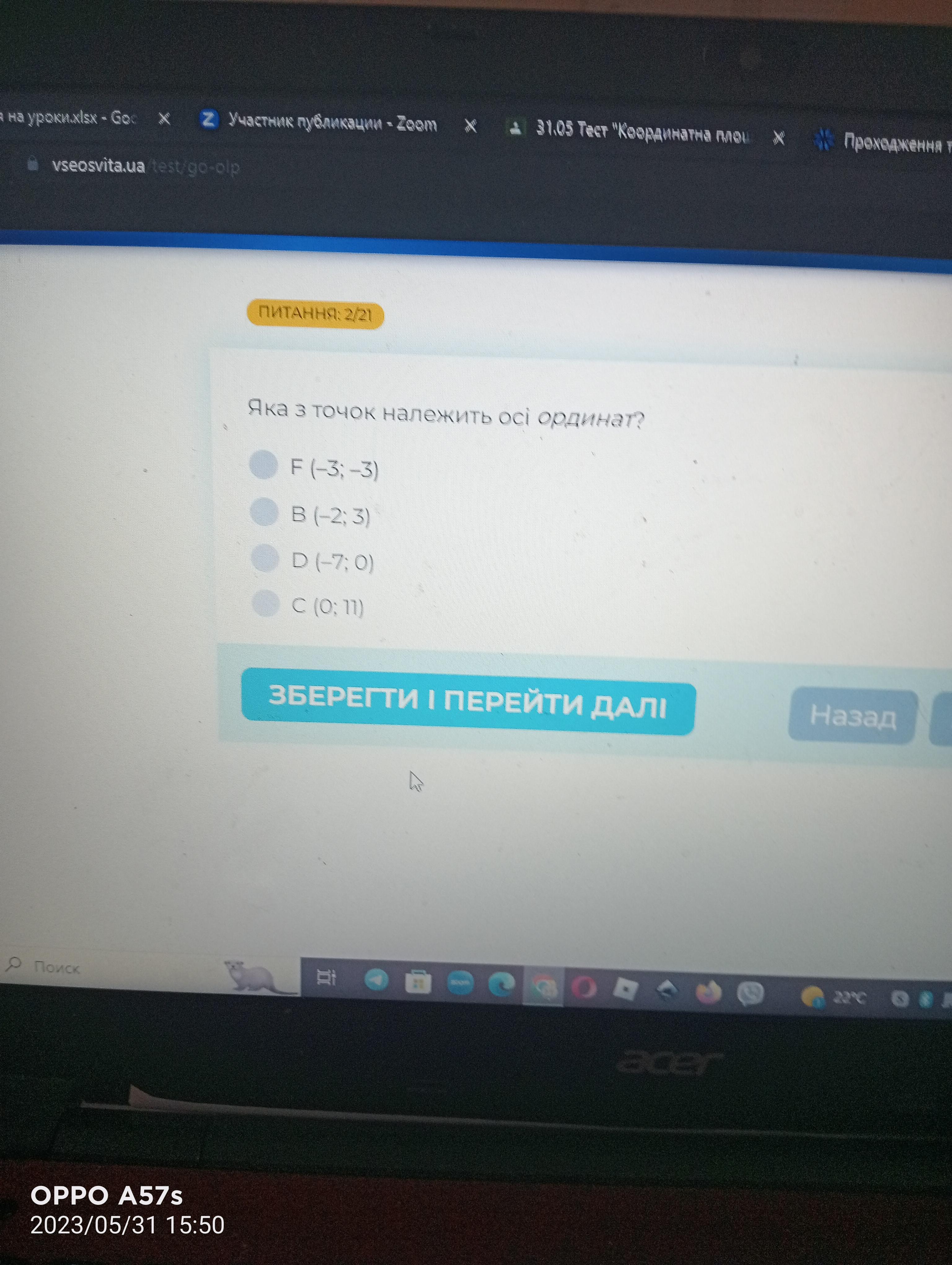 Посмотри на фото, ты видишь, что ось У проходит через точку 0. Значит если возьмём например (0;11), оно будет принадлежать У оси