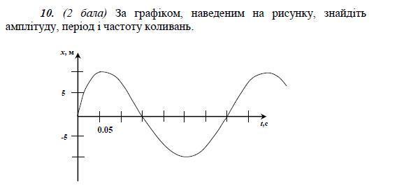 Ну, амплитуда 0,1 т.к. это максимум на который отклоняется маятни Период равен 1,2 (c) Ну а частота 1/1,2= (примерно) 0,83