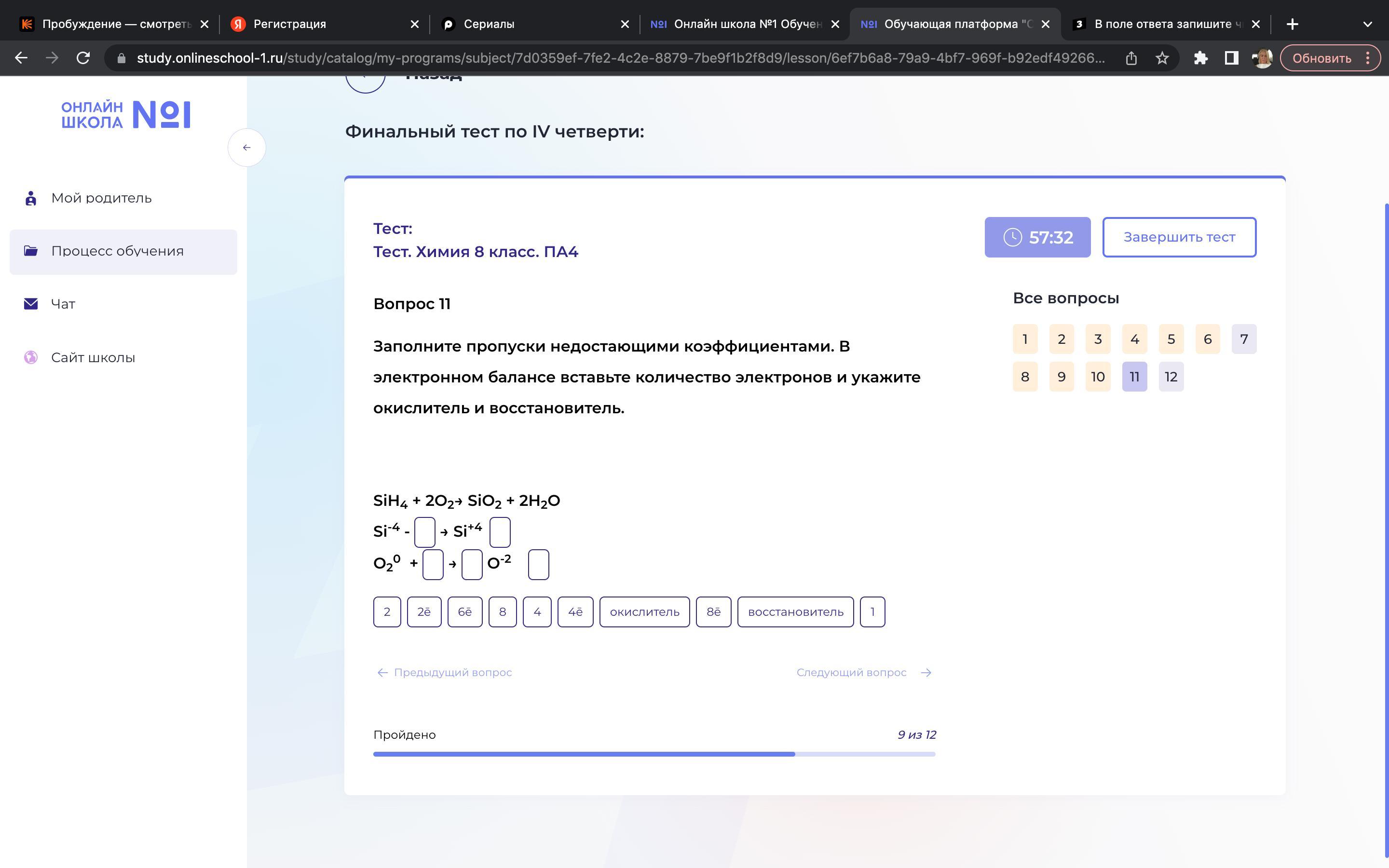 Заполните пропуски недостающими коэффициентами. В электронном балансе вставьте количество электронов и укажите окислитель и восстановитель.