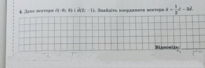 Дано вектори c(-6; 8) і d(2; -1). Знайдіть координати вектора n = 1/2 c - 3d