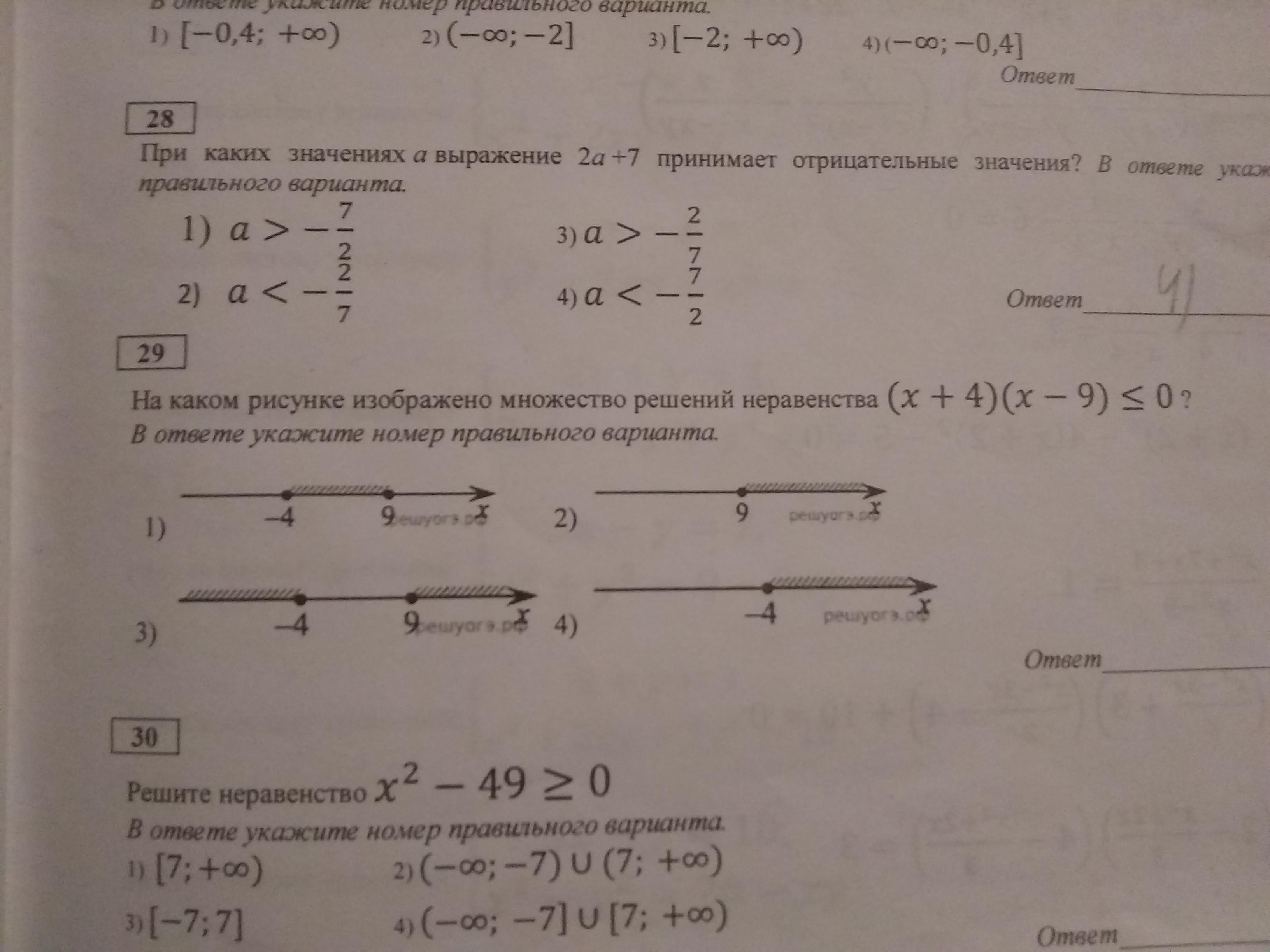 На каком рисунке изображено множество решений неравенства (x+4)(x-4)≤0 и почему
