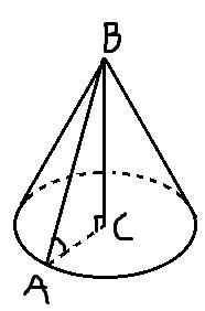 Висота і твірна конуса утворює прямокутний трикутник ABC