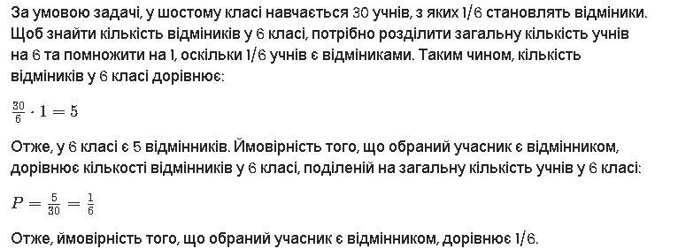 брали одного придставника 6 клас знайдіть ймовірність того що він є відмінником