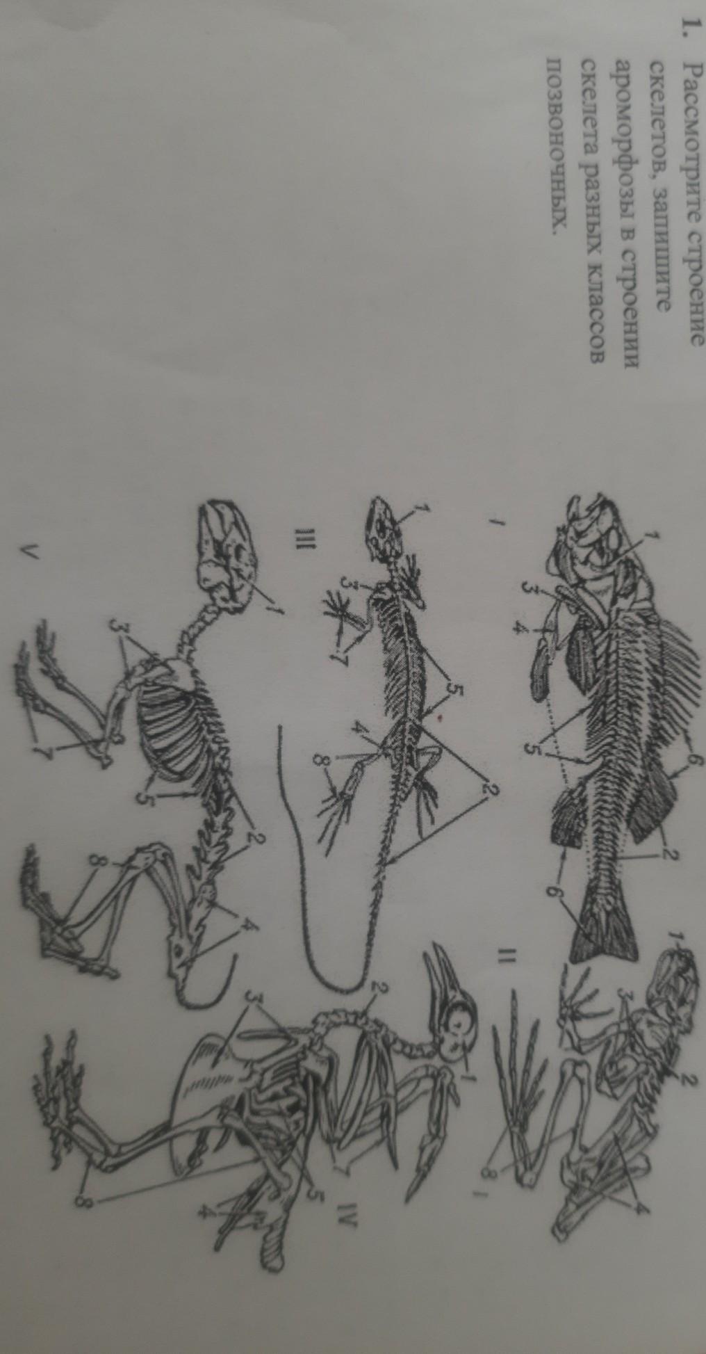 рассмотрите строение скелетов, запишите ароморфозы в строении и скелета разных классов позвоночных.