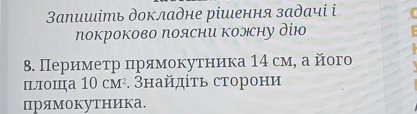 Нехай а=хсм- довжина, тоді b= (7-х)см - ширина. Площа прямокутника 10см^2