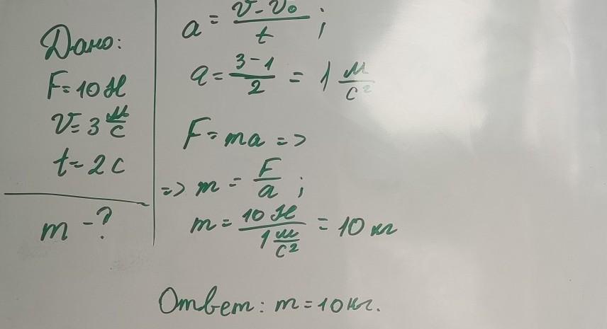 Тогда F=ma; m=F/a=10/1=10 кг.
