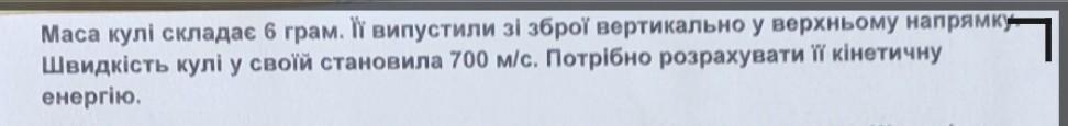 ⭕⭕⭕⭕Маса кулi складає 6 грам. Її випустили зі зброї вертикально у верхньому напрямку Швидкість кулі у своїй становила 700 м/с. Потрібно розрахувати її кінетичну енергію.