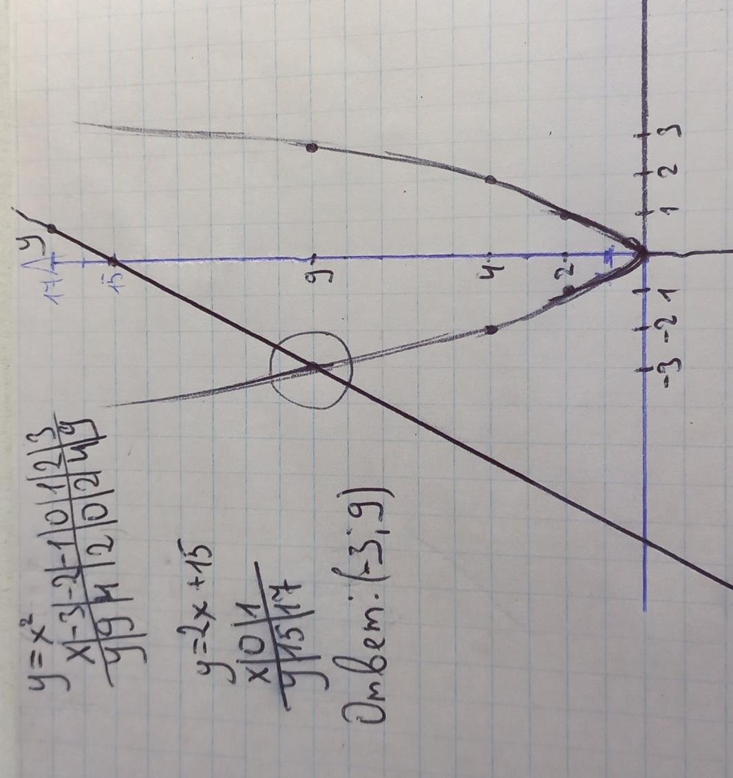 Найдите точки пересечения параболы у=х2 с прямой у = 2x + 15.