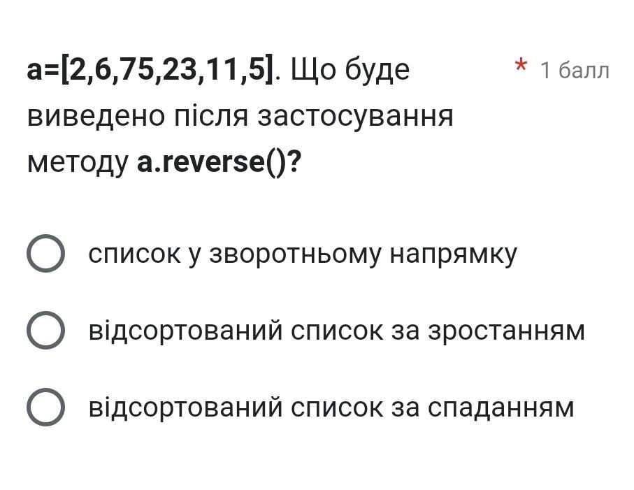 a=[2,6,75,23,11,5] изменится на a=[5,11,23,75,6,2]