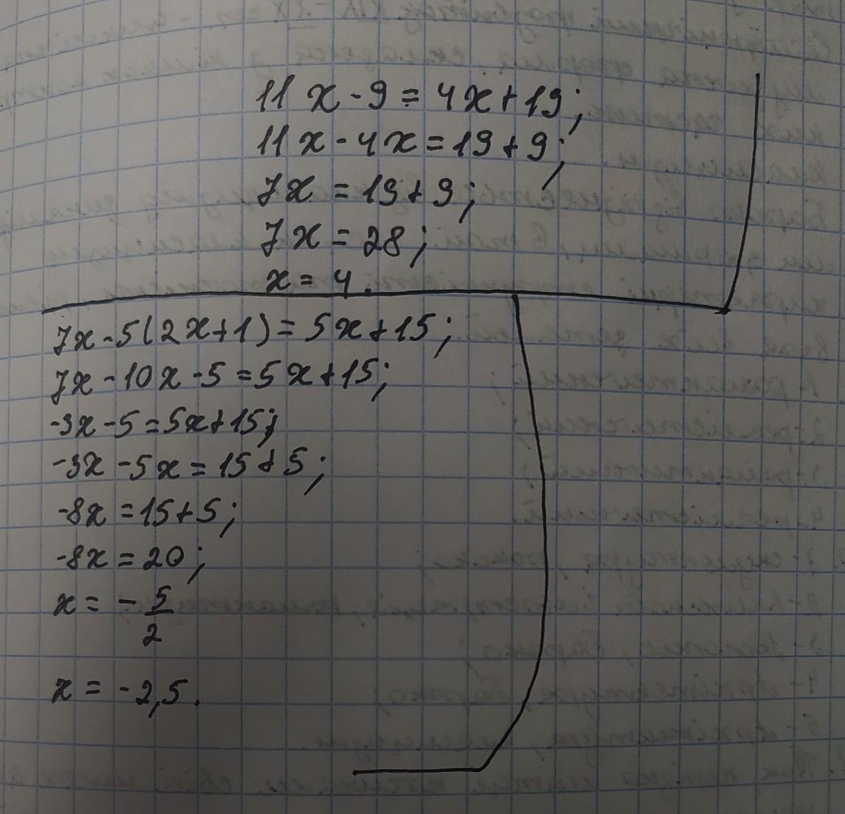 1)11х-9=4х+19