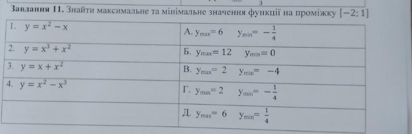 Терміново !!!! Знайти максимальне та мінімальне значення значення функції на проміжку [-2;1]
