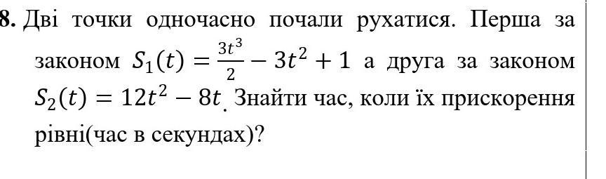 Отже, їх прискорення будуть рівні, коли час буде дорівнювати 3.(3) секунди