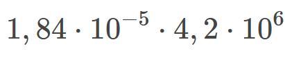 1.84*(10^-5)*4.2*10^6=1.84*1/10^5*4.2*10^6=0.0000184*4200000=77.28