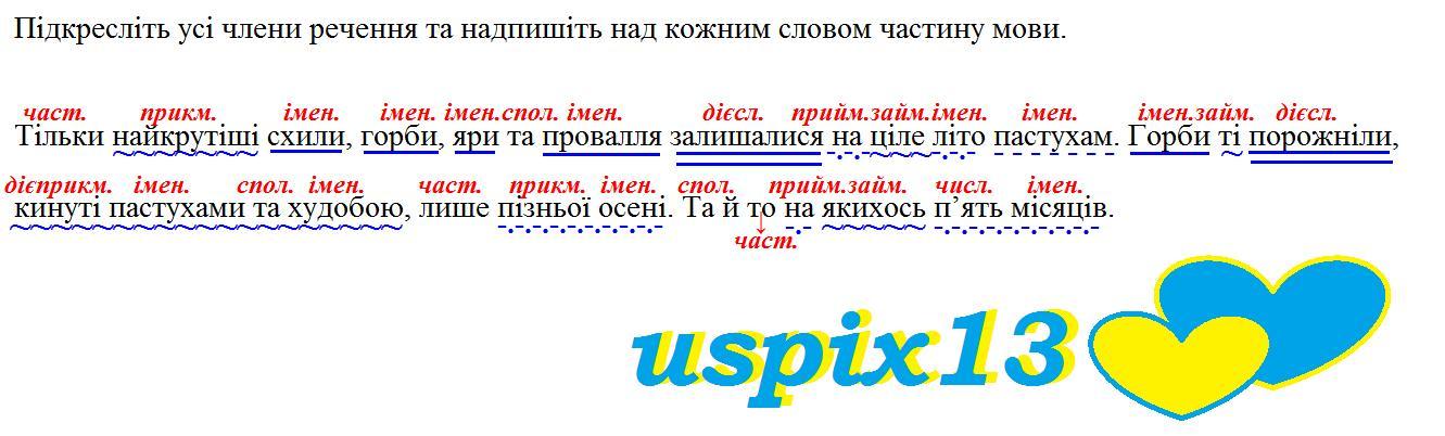 Підкресліть усі члени речення та надпишіть над кожним словом частину мови.