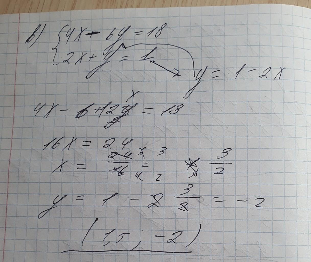 Розв'яжіть систему рівнянь способом підстановки: г) 5х-6у=1; 3х+4у-12; д) 3х+4у=-5; 5х-3у=11; в) 4x-6y=18: 2х+у=1; е) ху=3; х²-у-15; желательно ответ на фото в тетраде так просто мне понятней